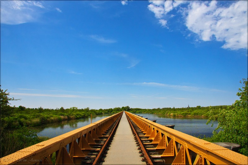 Aan de voet van de Moerputtenbrug ligt een drijvend ponton van waar u het beroemde zijaanzicht van de brug kunt zien. Bij de brughoofden is informatie te vinden over de geschiedenis van de beide bruggen. (bron Staatsbosbeheer).
